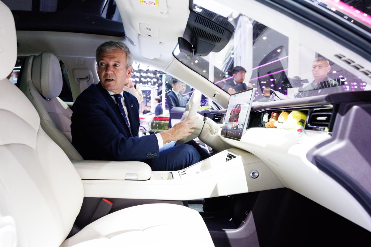 El presidente de la Xunta, Alfonso Rueda, acompañado por la conselleira de Economía e Industria, María Jesús Lorenzana, visitó hoy el salón del automóvil Beijing Autoshow, considerado como el mayor salón de estas características del mundo con una superficie de 380.000 m² repartidos en dos recintos.